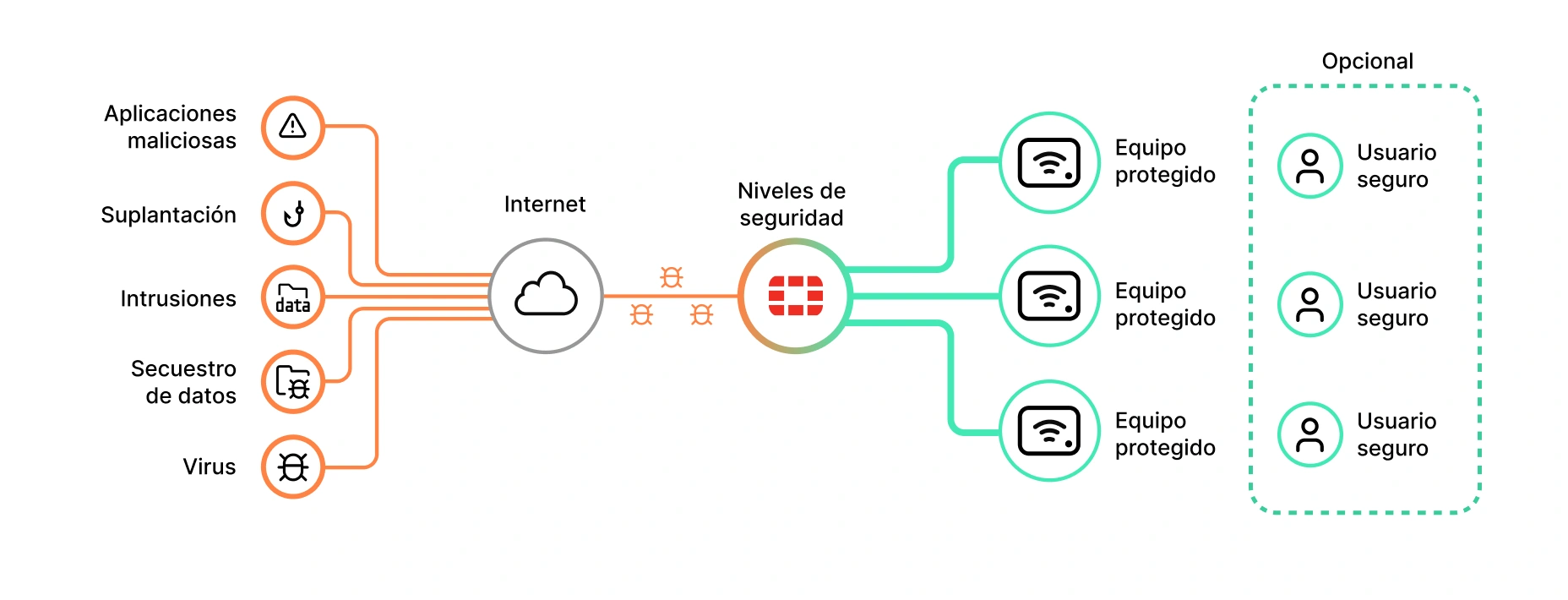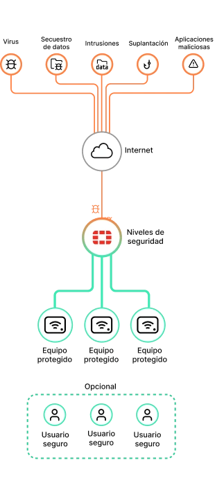 Usuarios que necesiten una seguridad avanzada que incluya filtros web, control de aplicaciones, prevención intrusos en la red, detectar y filtrar correos no deseados.